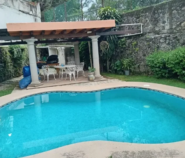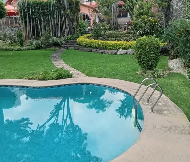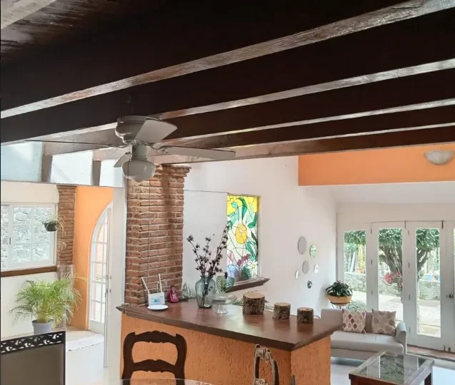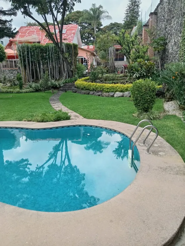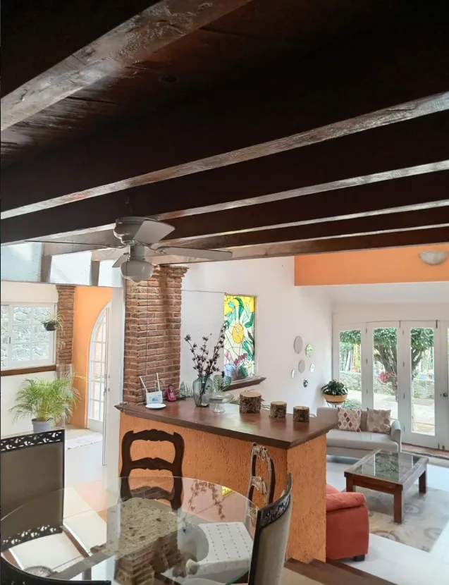 For sale: A spectacular house located in the cool and exclusive area of Rancho Cortes, Cuernavaca, priced at $9,300,000 MXN. This property offers a lifestyle of comfort and privacy, with spacious rooms and carefully designed details.