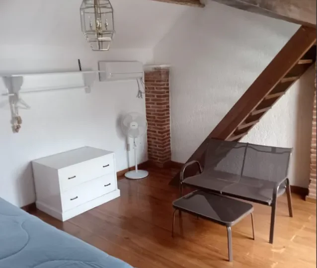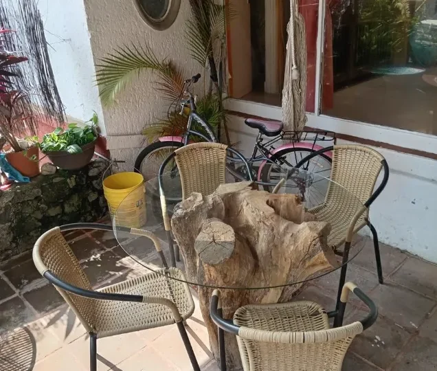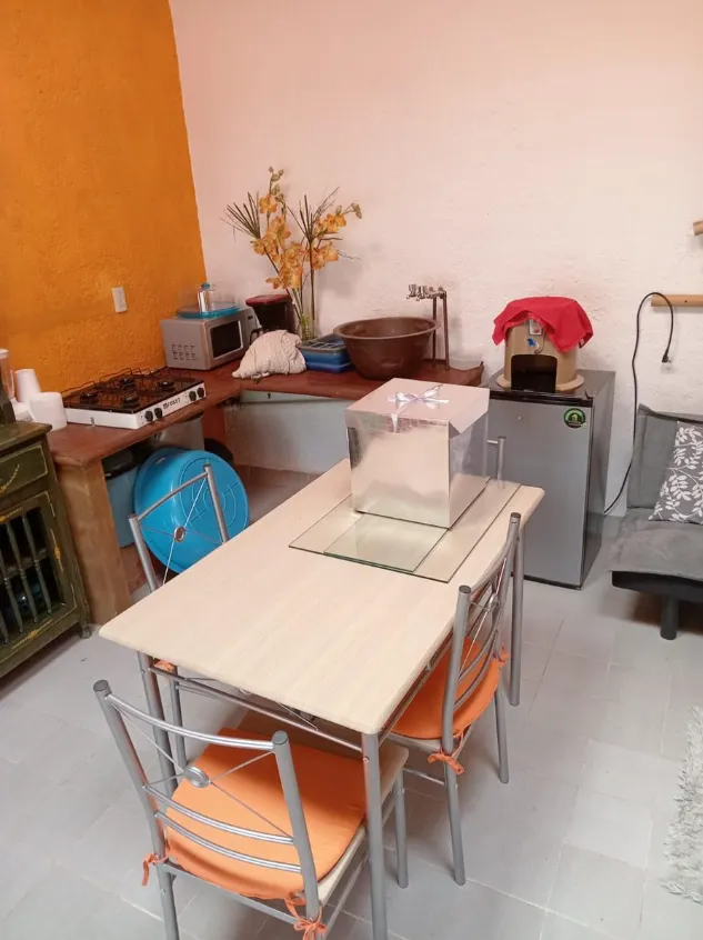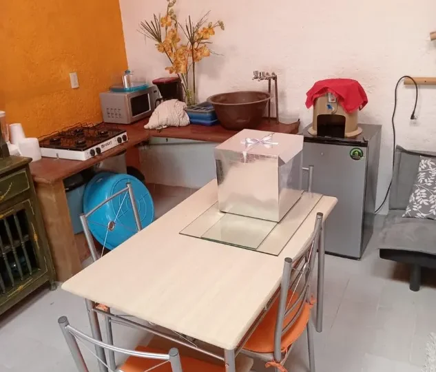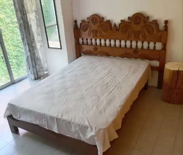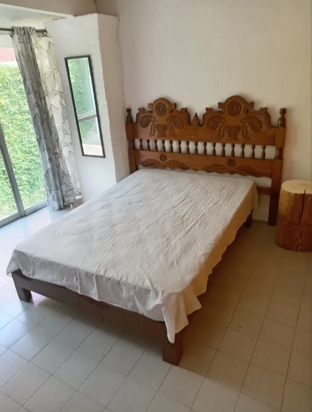 Bungalow con terraza, recámara y baño.